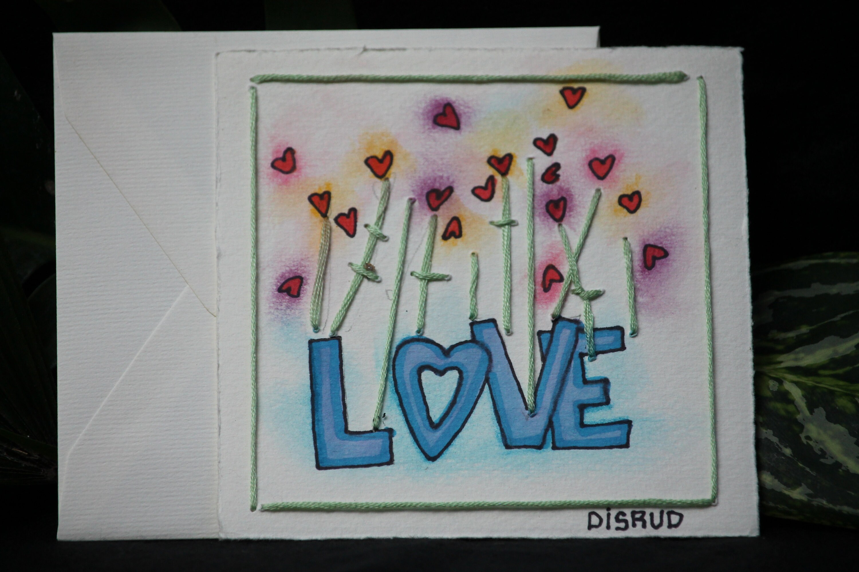 Small Hand Sewn Watercolor / Card / Note / Special Saying -by- Carrie Disrud